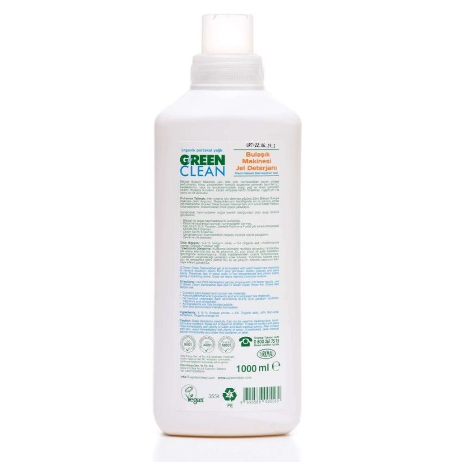 U Green Clean Bitkisel Bulaşık Makinesi Jeli, bitki özlü hammaddeler içeren yüksek performanslı, kolay çözünebilen formüllüdür