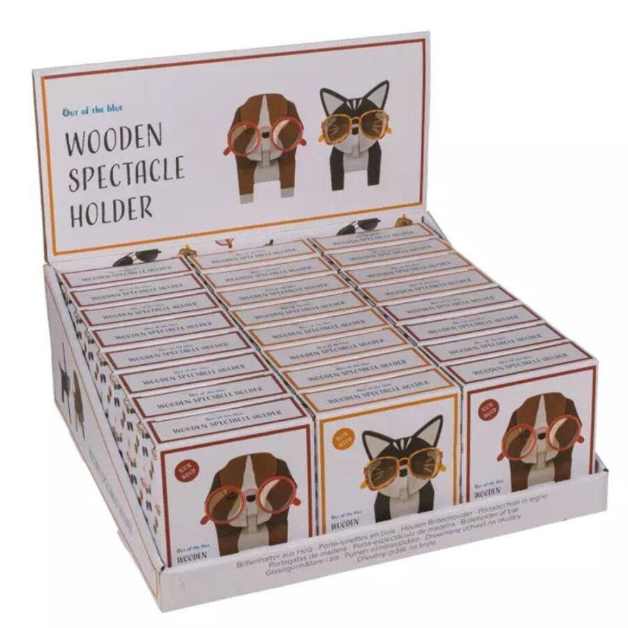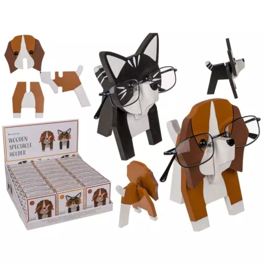Out Of The Blue Ahşap Gözlük Tutucu (Kedi, Köpek), gözlüklerinizi düzenli ve güvenli şekilde saklamanıza yardımcı olur. 15 x 10 cm ölçülerindeki bu dekoratif ahşap tutucu, kedi ve köpek figürlü tasarımıyla sevimli bir görünüm sunar. Hem masaüstü düzeni sağlar hem de ev veya ofis dekorasyonuna hoş bir dokunuş katar.