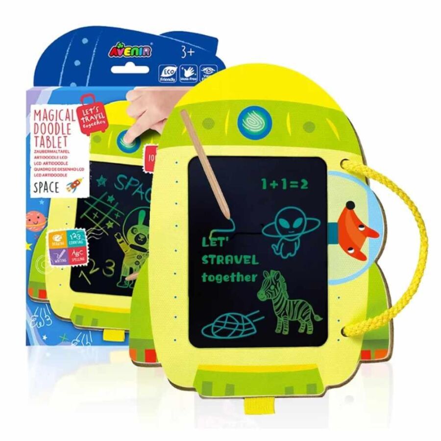 Avenir Space Büyülü Tablet, 3 yaş ve üzeri çocukların her yerde özgürce çizim yapabilmeleri için tasarlanmış pratik ve eğlenceli bir dijital çizim tahtasıdır. Araba yolculuklarında, seyahatlerde veya evde sessiz oyun saatleri için idealdir.