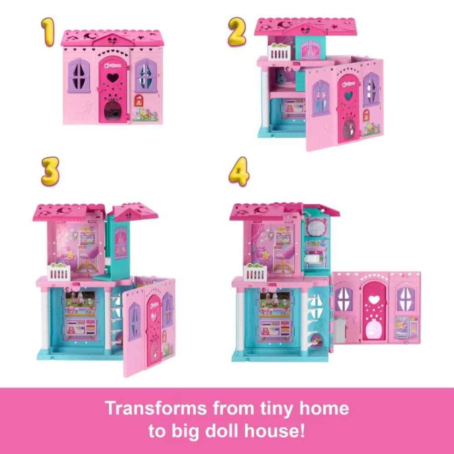Chelsea’nin Pop-Up Bebek Evi ile minik bir evden kocaman bir oyun dünyasına hoş geldiniz! İlk bakışta kompakt görünen bu sevimli ev, açıldığında 5’ten fazla oyun alanı sunan geniş bir oyun evine dönüşür. Chelsea bebek ve sevimli köpekçiği, evin her köşesinde eğlenceli hikâyeler canlandırabilir.