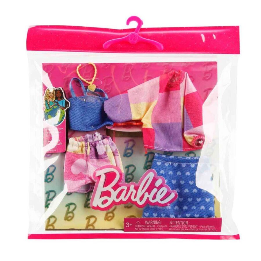 Barbienin Kıyafet Koleksiyonu İkili Paket GWC32-HRH42 ile modayı yakalayın! Pakette iki şık kıyafet, bir çanta ve aksesuarlar bulunur. Barbie bebekler ister okulda, ister sahilde ya da arkadaş buluşmalarında bu kombinlerle göz kamaştırır. Tarzınıza uygun parçaları seçerek eğlenceli kombinler yaratabilirsiniz.