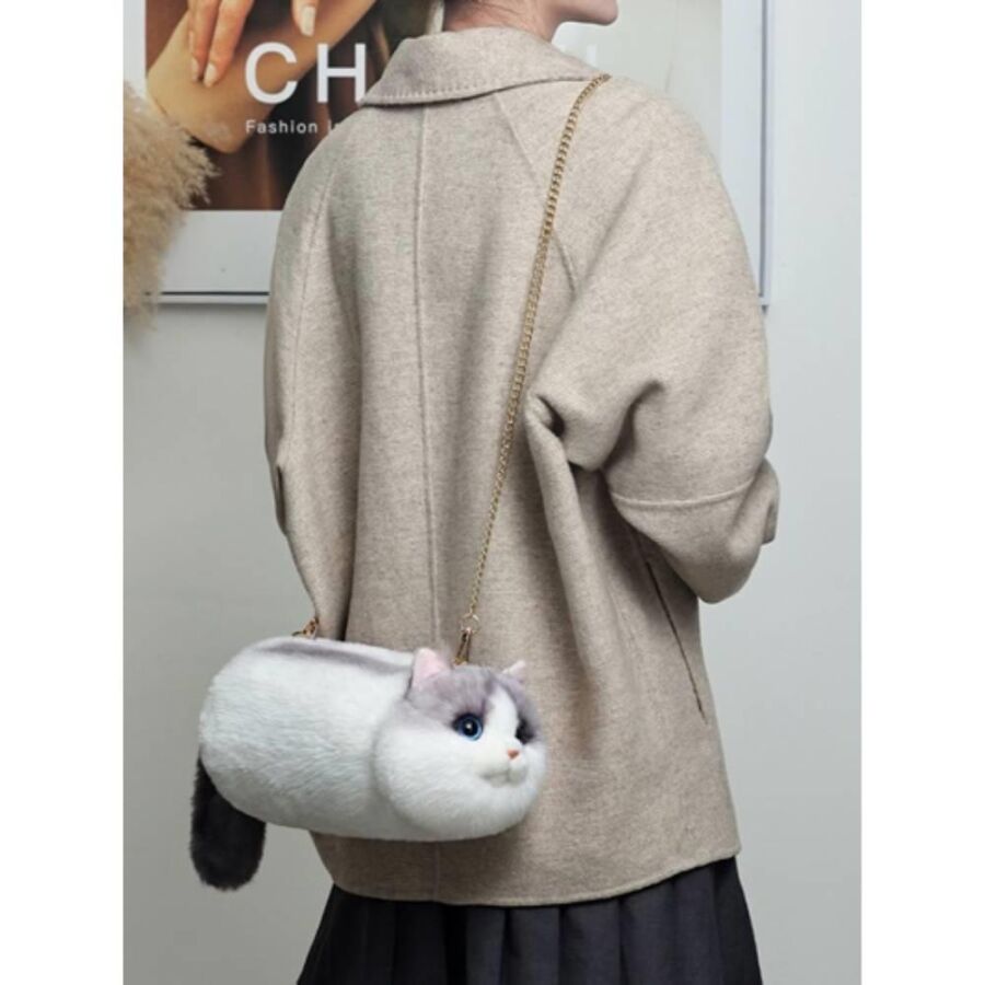 Ayarlanabilir beyaz sapı sayesinde elde veya bilekte rahat taşınabilir. Yumuşak gövdesi ve gerçekçi kedi kuyruğu detayı, modele hem eğlenceli hem de koleksiyonluk bir hava katıyor. Cüzdan, telefon ve küçük kişisel eşyalar için ideal iç hacme sahip olması, günlük kullanımda pratiklik sunar. Kedili tasarımları sevenler için hem şık hem de eğlenceli bir armağan seçeneğidir.