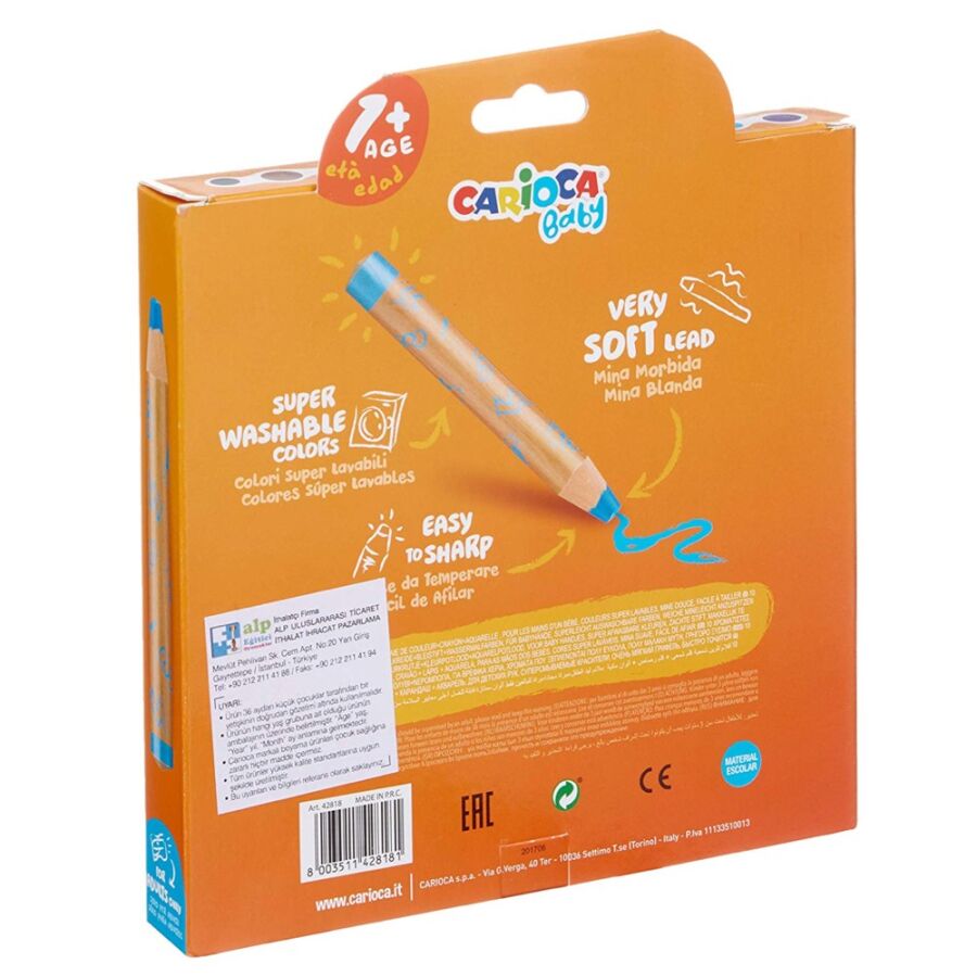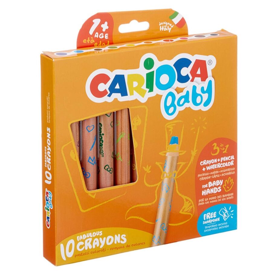 Carioca Baby üçü bir arada Jumbo Ahşap Gövdeli Boya Kalemi 10'lu (Kalemtraş Hediyeli)