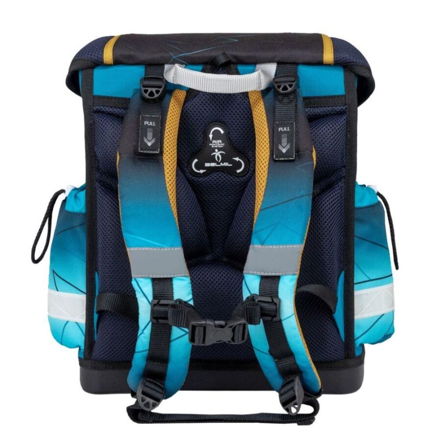 6-9 yaş arası çocuklar için tasarlanan Belmil Fire Football okul çantası, hafif (930-990 g) yapısı ve su geçirmez dayanıklı kumaşıyla dikkat çeker. Ergonomik sırt desteği, ayarlanabilir omuz askıları ve isteğe bağlı göğüs kemeri sayesinde konforlu bir kullanım sunar.