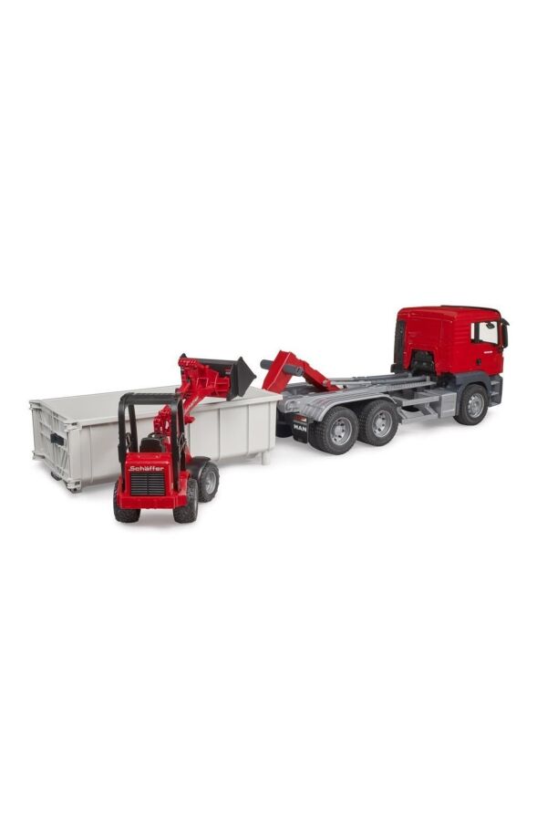 Damperi hareket ettirilebilmektedir. Arkasında " Schaeffer Yükleyici " bulunmaktadır. Damperin açılabilen kapakları sayesinde kolaylıkla yükleme yapılabilmektedir. Yumuşak kauçuk lastikleri bulunmaktadır. Açılan hareketli kapıları bulunmaktadır. Avrupa'da üretilmiştir. Ürünlerin tamamı ABS ve benzeri yüksek kaliteli, çocuk sağlığına uygun plastiklerden üretilmektedir. 4 yaş ve üzeri için uygundur. Ürün Ölçüleri : 51.5 x 18.5 x 26 cm