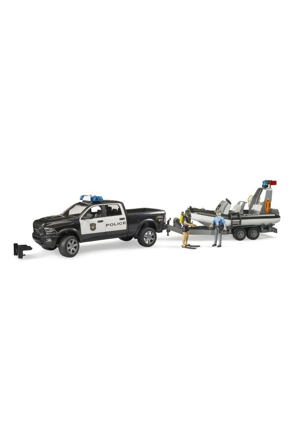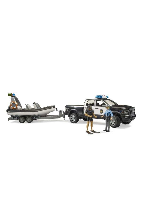 Bruder Ram 2500 Polis Aracı Römork, Zodyak, 2 Figür ve Aksesuarlar