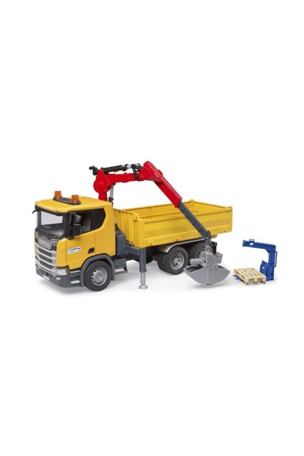 Scania lisanslıdır Yukarıya doğru kalkan damperi sayesinde yükünü boşaltabilir Üzerindeki hareketli vinci sayesinde yükleri yükleyebilir indirebilir Damperin açılabilen kapakları sayesinde kolaylıkla yükleme yapılabilmektedir Vincin ucuna takılan 2 farklı yükleme aparatı sayesinde çeşitli yükler dampere yüklenebilir Katlanabilen dış aynaları bulunmaktadır Yumuşak kauçuk lastikleri bulunmaktadır Açılan hareketli kapıları bulunmaktadır BR02801 kodlu siren ile uyumludur.(Haricen satılmaktadır) Almanya'da üretilmiştir Ürünlerin tamamı ABS ve benzeri yüksek kaliteli, çocuk sağlığına uygun plastiklerden üretilmektedir 4 yaş ve üzeri için uygundur