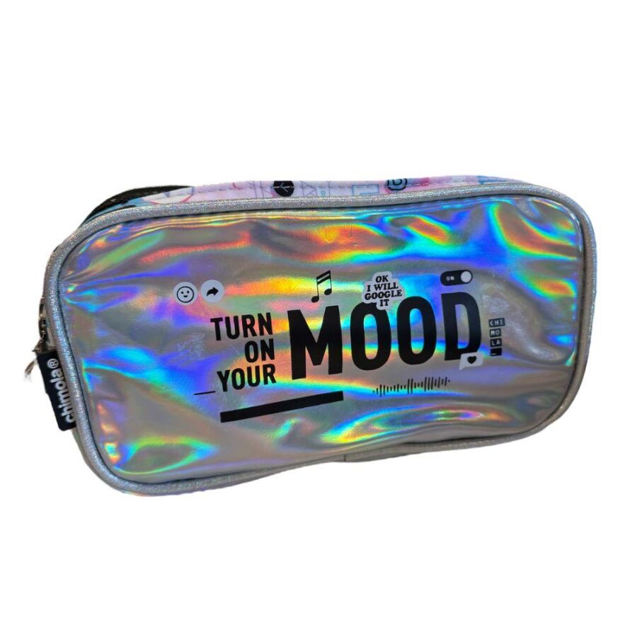Chimola Mood Kalem Çantası Cat6a – Parlak Gümüş Renk, 2 Gözlü + 2 Küçük Kalemlik