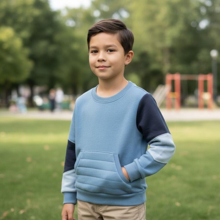 Sweatshirtün ön kısmında bulunan kanguru cebine çocuklar ellerini koyabilir, rahat edebilirler