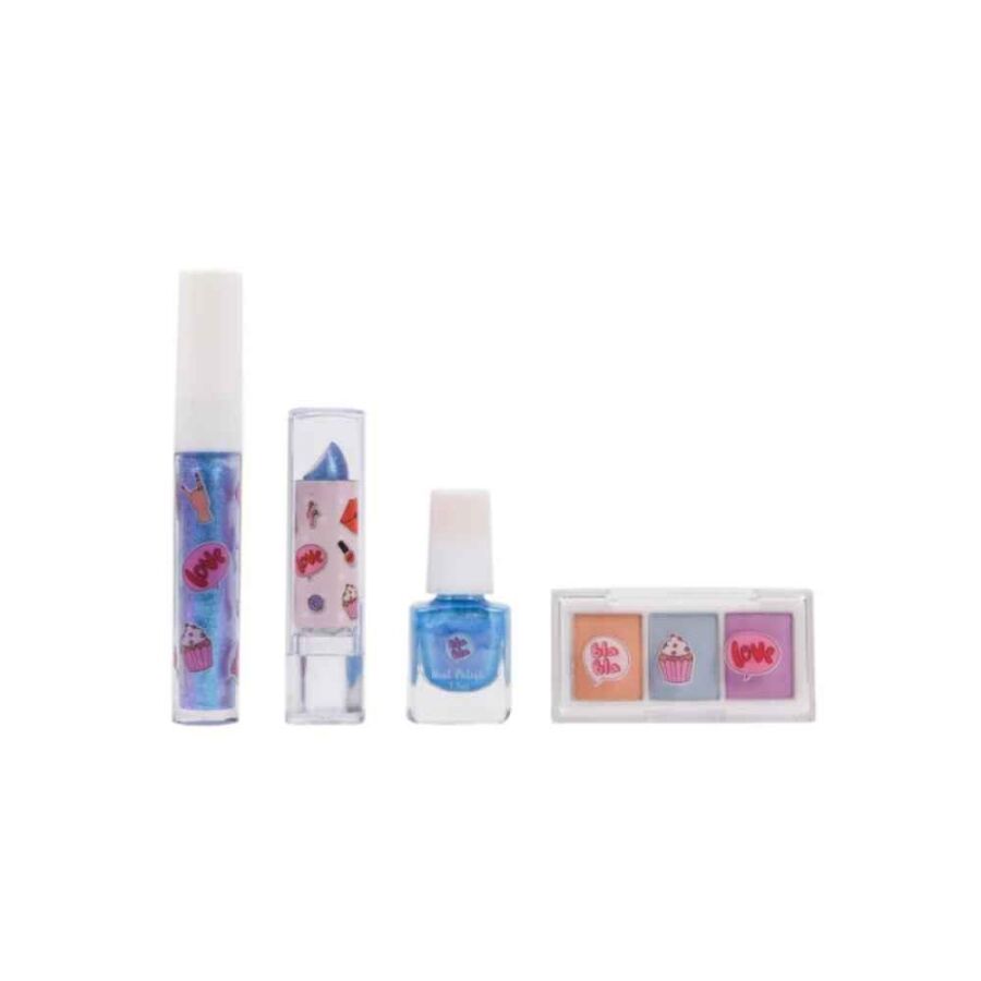 Far paleti, dudak parlatıcısı, ruj ve ojeden oluşan bu özel set; farklı kombinler denemeyi seven çocuklar için harika bir başlangıç sunar. Kompakt kutu yapısı sayesinde kolay taşınabilir ve düzenli şekilde saklanabilir. Hem günlük oyunlarda hem de özel gün hazırlıklarında keyifle kullanılabilir.