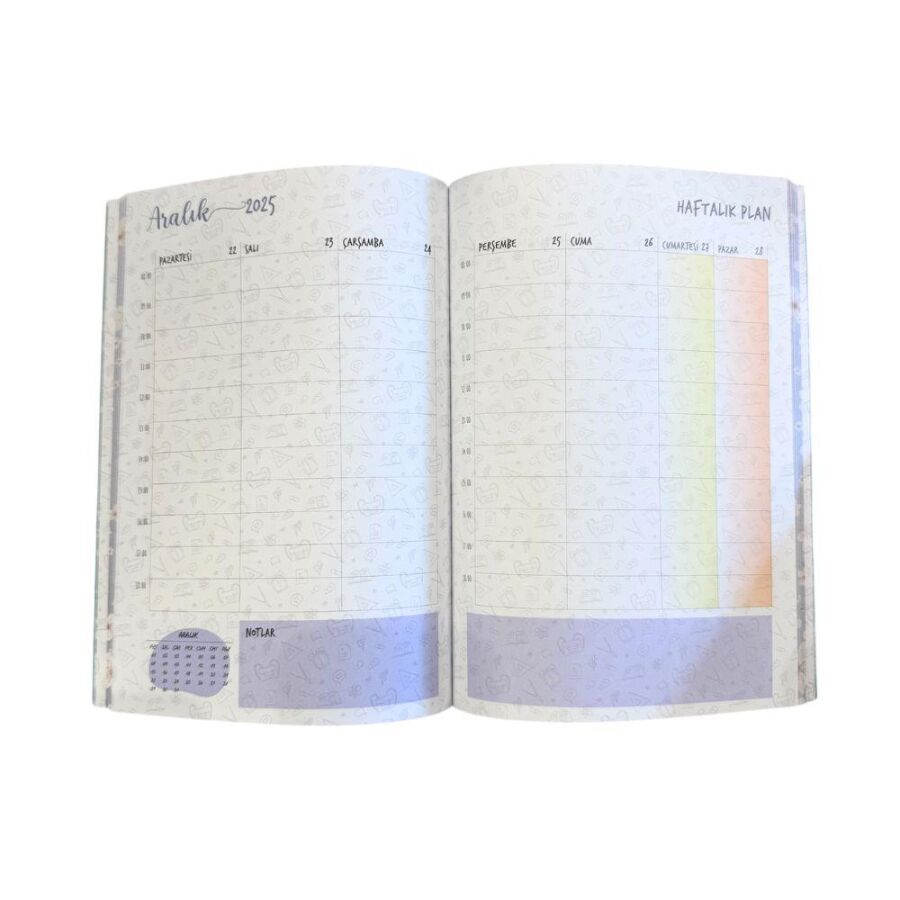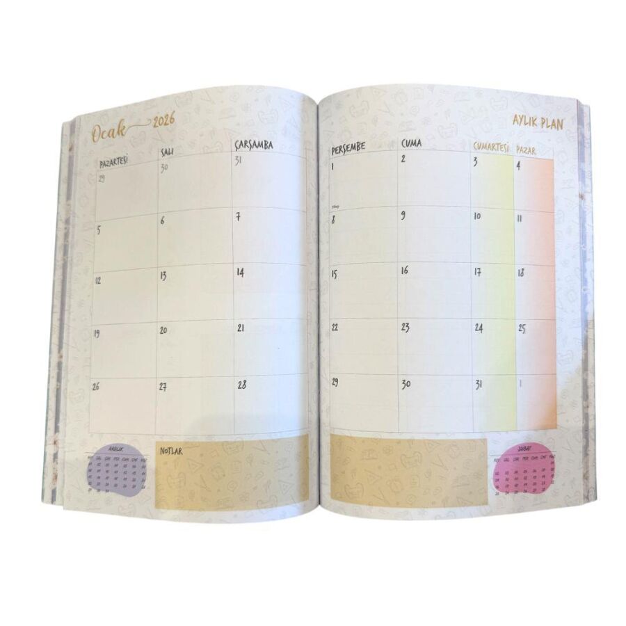 Akademik takvimli yapısı sayesinde ders programlarını, toplantıları ve önemli tarihleri kolayca takip edebilir, günlerinizi verimli şekilde planlayabilirsiniz. Dayanıklı kapak ve kaliteli kağıtları ile uzun süreli kullanım imkânı sunar.