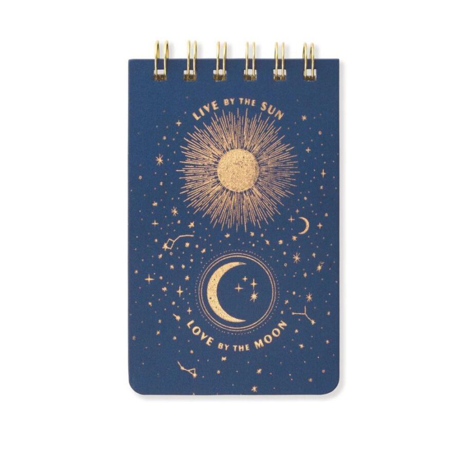 Gelince Haber VerDesignworks Ink Twin Wire Spiralli Kumaş Not Defteri Live By The Sun 14,9x8,9 cm (Midnight), kompakt boyutuyla günlük notlarınızı, fikirlerinizi ve ilham veren düşüncelerinizi her yerde yanınızda taşımanızı sağlar. Kumaş kapaklı tasarım ve altın yaldızlı detaylar ile şık ve modern bir görünüm sunar.