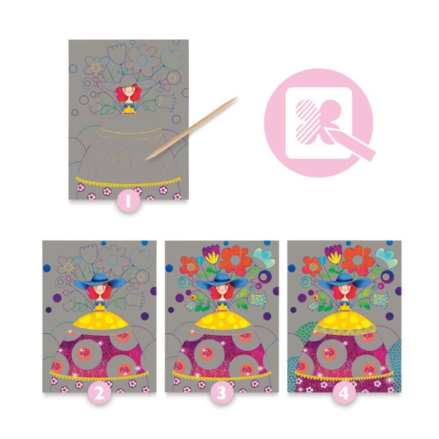 Djeco Kazıma Kartları - Bal des Coquettes | Yaratıcı ve Eğlenceli Sanat Etkinliği