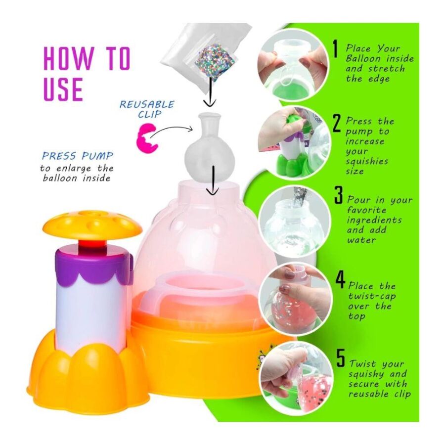 Doctor Squish Squishy Yapma Makinesi Neon ile kendi squishy oyuncaklarını kolayca yapabilir, neon renklerde eğlenceli ve yumuşacık squishy’ler tasarlayabilirsin! Pompayı kullanarak squishy’nin boyutunu küçük, orta veya devasa olarak ayarlayabilir, kutudan çıkan sim ve slime ile ya da kendi slime ve dolgularını kullanarak doldurabilirsin. Yaratıcılığını konuştur, kendi neon squishy koleksiyonunu oluştur!