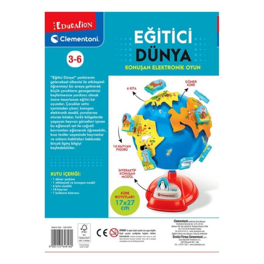 Eğitici Dünya, küçük çocukların gezegenimizi keşfetmesini sağlayan etkileşimli bir öğrenme oyunudur. Geleneksel yerküre modelini kullanarak coğrafya, hayvanlar ve habitatlar hakkında eğlenceli bilgiler edinmelerini sağlar. İşte bu harika setin özellikleri:
