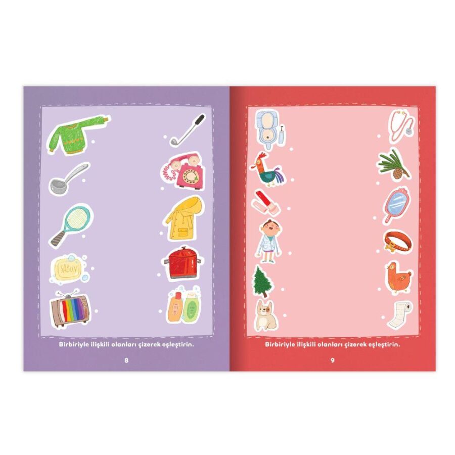 Eolo’nun Dikkat ve Düşünme Becerileri: Muhakeme ve İlişki Kurma kitabı, 4-7 yaş arası çocukların düşünme, analiz etme ve ilişki kurma yeteneklerini geliştirmek amacıyla hazırlanmıştır. Kitapta çocuklardan, verilen nesne ve kavramlar arasındaki bağlantıları bulup eşleştirmeleri istenir. Bu etkinlikler, çocukların bilgileri sınıflandırma ve neden-sonuç ilişkilerini kavrama becerilerini destekler.