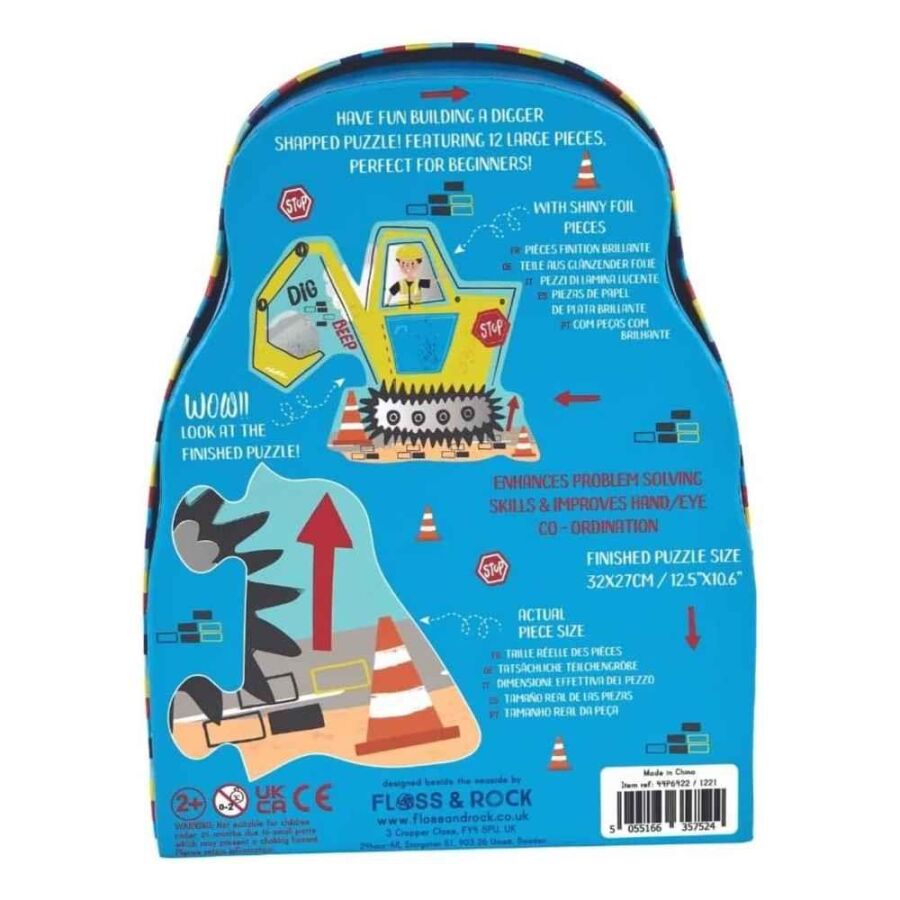 Floss & Rock 12 Parça Construction Puzzle, çocuklar biraz daha zorlayıcı yapbozlara geçmeye hazır olduğunda ideal bir seçenektir. Hem puzzle hem de özel tasarım kutusu, havalı bir kepçe (digger) formunda tasarlanmıştır.