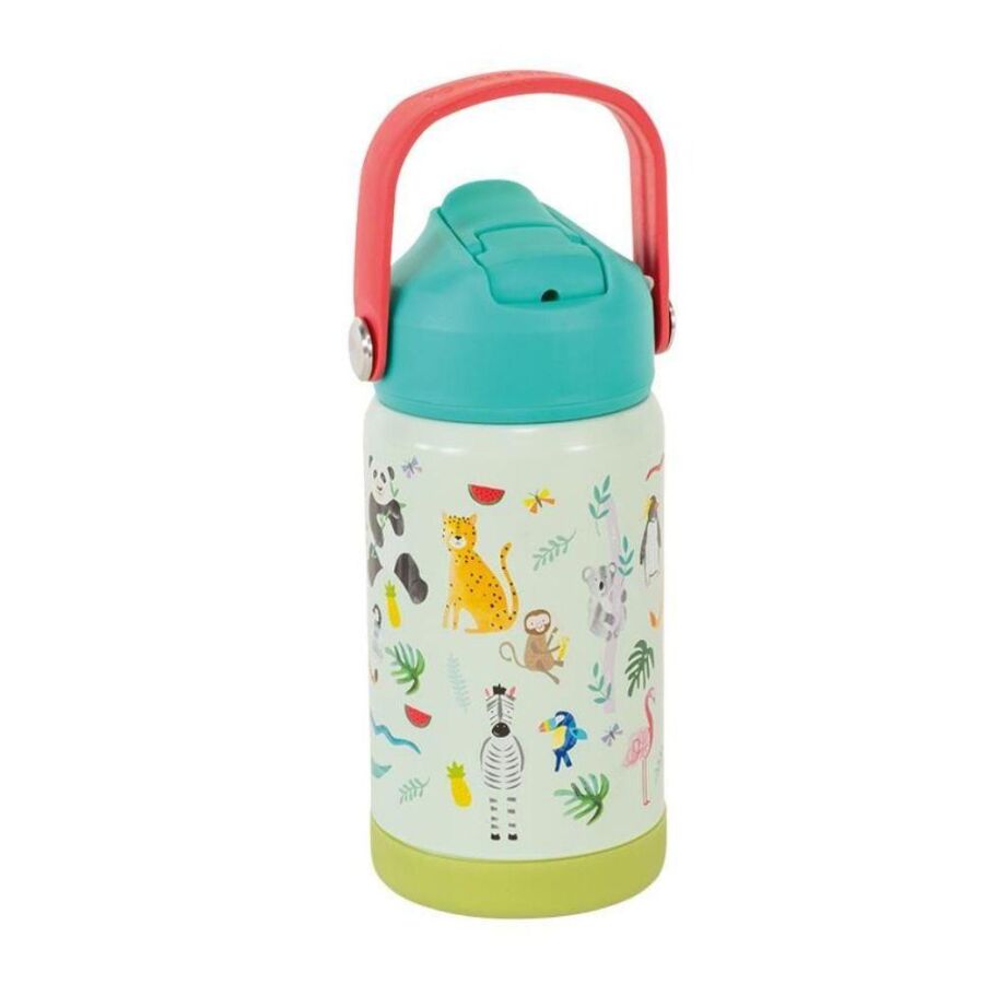 Doğayı seven minikler için özel olarak tasarlanan Floss & Rock Paslanmaz Çelik Pipetli Suluk Jungle, rengarenk orman desenleriyle çocukların su içme alışkanlığını destekler. %100 paslanmaz çelik gövdesi ve vakum yalıtımı sayesinde içecekleri uzun süre taze ve serin tutar.