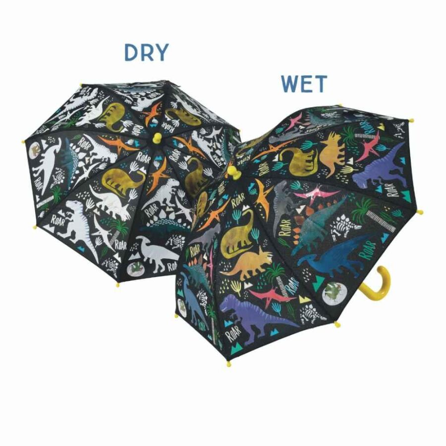 Floss & Rock Renk Değiştiren Şemsiye Dino, yağmurlu günleri minikler için dinozorlarla dolu eğlenceli bir maceraya dönüştürüyor. Yağmur damlaları şemsiyeye değdiğinde, üzerindeki açık renkli dinozor desenleri anında canlanarak renklenir; şemsiye kurudukça bu desenler yeniden eski görünümüne döner. Bu sihirli renk değişimi, her yağmurda çocuklara keyifli bir sürpriz sunar.