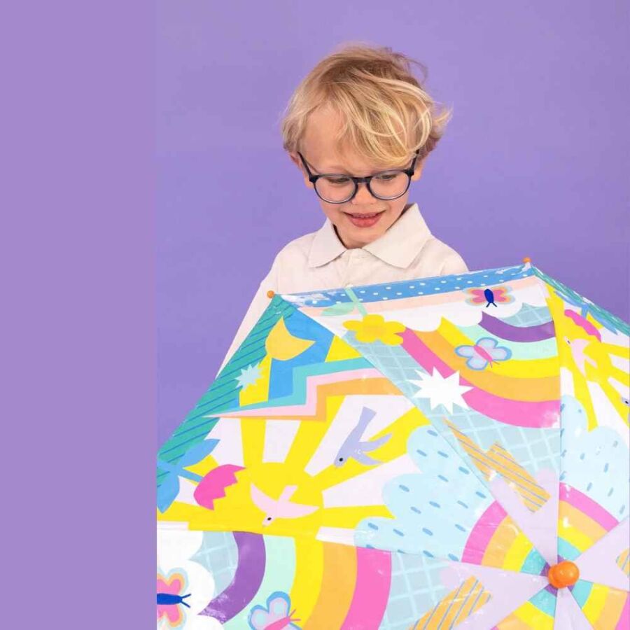 Floss & Rock Renk Değiştiren Şemsiye Rainbow, yağmurlu havaları çocuklar için renkli ve eğlenceli bir deneyime dönüştürüyor. Yağmur damlaları şemsiyeye değdiği anda, üzerindeki açık renkli desenler canlı gökkuşağı tonlarına bürünür; şemsiye kurudukça bu desenler tekrar eski haline döner. Bu sihirli değişim, her yağmurda keyifli bir sürpriz sunar.