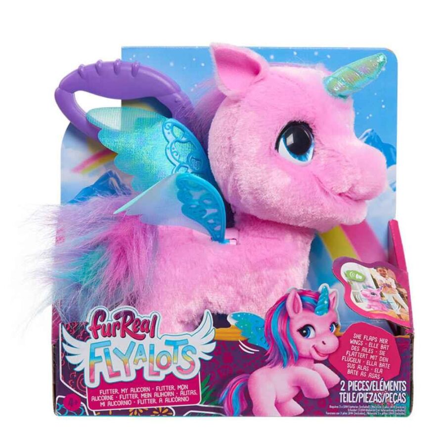 FurReal Fly A Lotus Alicorn, çocuklara hem yürüyüş hem de bakım temalı eğlenceli bir oyun deneyimi sunan interaktif bir peluş arkadaştır. Tasması takılıyken düz zeminde gezdirildiğinde ileri doğru hareket eder ve aynı anda kanatlarını çırpar. Havaya kaldırıldığında ise kanat çırpma hızı artarak oyuna gerçekçi bir hareket kazandırır.