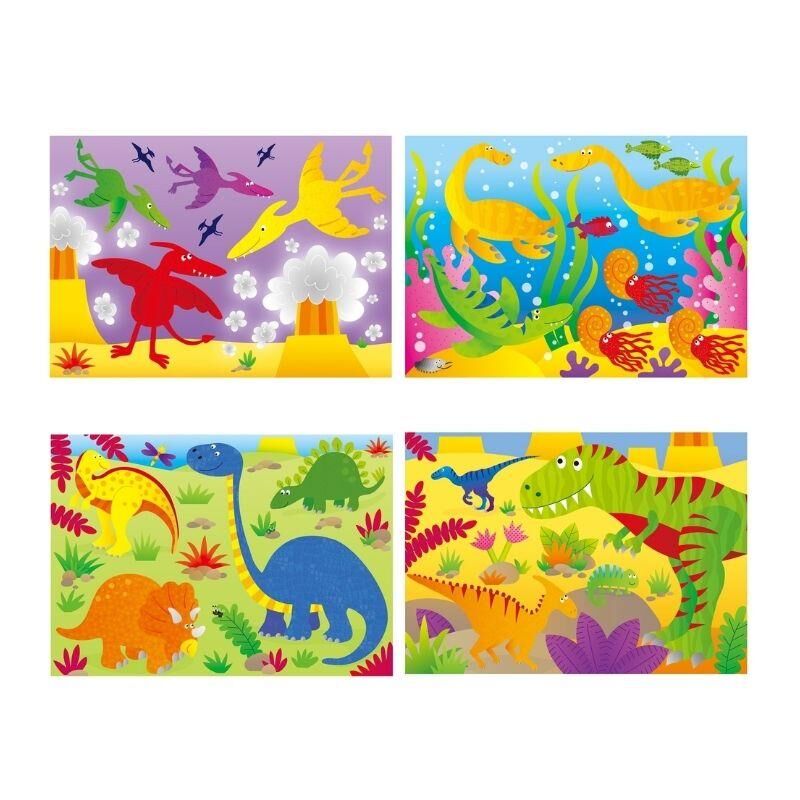 İçerik: 12, 16, 20 ve 24 parçalı 4 farklı dinozor temalı yapboz.