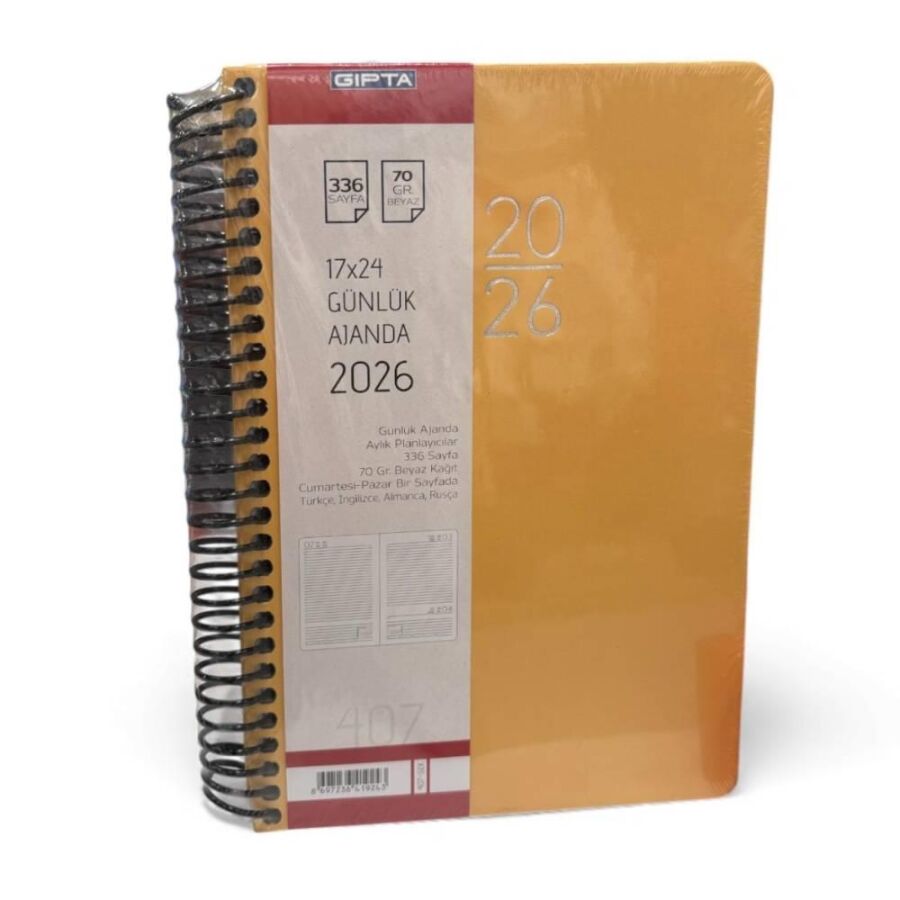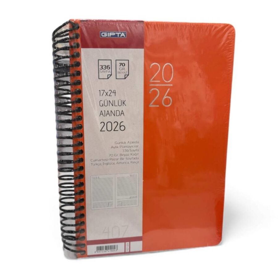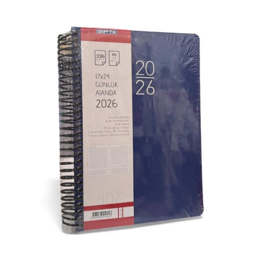 Gıpta Ajanda Günlük 17 x 24 Model 407, planlı ve verimli bir yıl geçirmek isteyenler için ideal bir günlük ajanda seçeneğidir. 2026 yılına özel olarak hazırlanan bu ajanda, her gün için ayrı alan sunarak randevularınızı, notlarınızı ve yapılacaklar listenizi düzenli şekilde takip etmenizi sağlar.