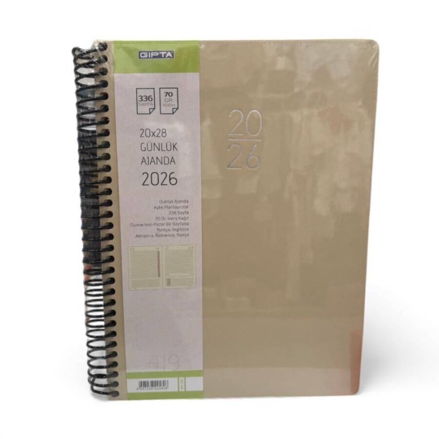 Gıpta 2026 Günlük Ajanda Model 419, geniş boyutu ve fonksiyonel iç tasarımıyla planlı bir yıl geçirmek isteyenler için profesyonel bir çözüm sunar. 20 x 28 cm ölçüsü sayesinde her gününüz için ferah bir yazım alanı sağlar ve yoğun programlarınızı rahatça organize etmenize yardımcı olur.