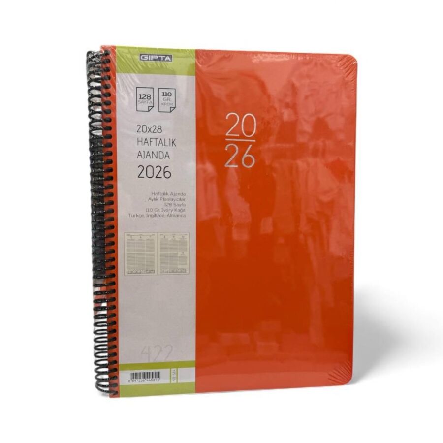 Gıpta 2026 Haftalık Ajanda Model 422, geniş boyutu ve fonksiyonel iç tasarımıyla planlama alışkanlıklarını bir üst seviyeye taşır. 20 x 28 cm ölçüsü sayesinde haftalık programlarınızı rahatça not alabileceğiniz geniş bir kullanım alanı sunar.
