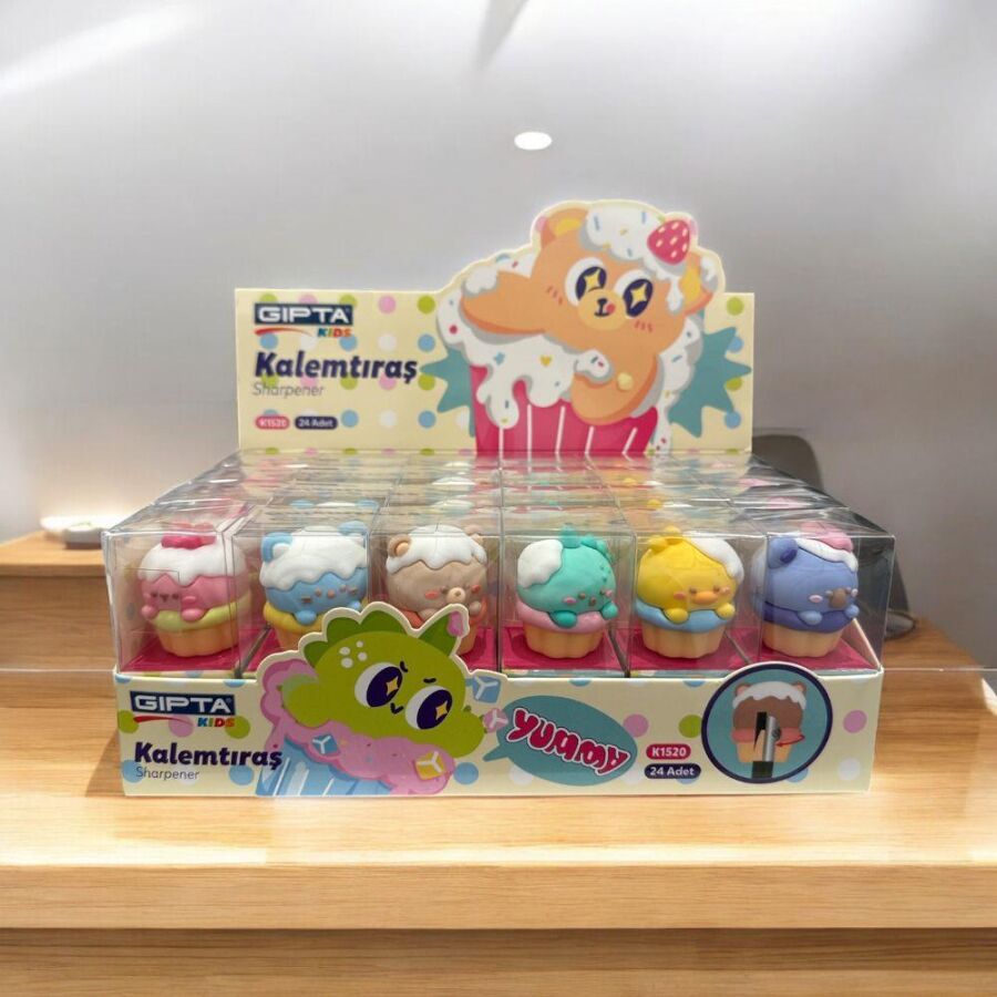 Gıpta Kalemtıraş Cupcake 3D, cupcake şeklindeki eğlenceli tasarımıyla kalem açmayı daha keyifli hale getirir. Renkli ve detaylı görünümü çocukların dikkatini çeker, kalem kutularına ve masalara sevimli bir hava katar. Dayanıklı bıçak yapısı sayesinde kalemlerinizi pürüzsüz ve düzgün şekilde açmanızı sağlar.