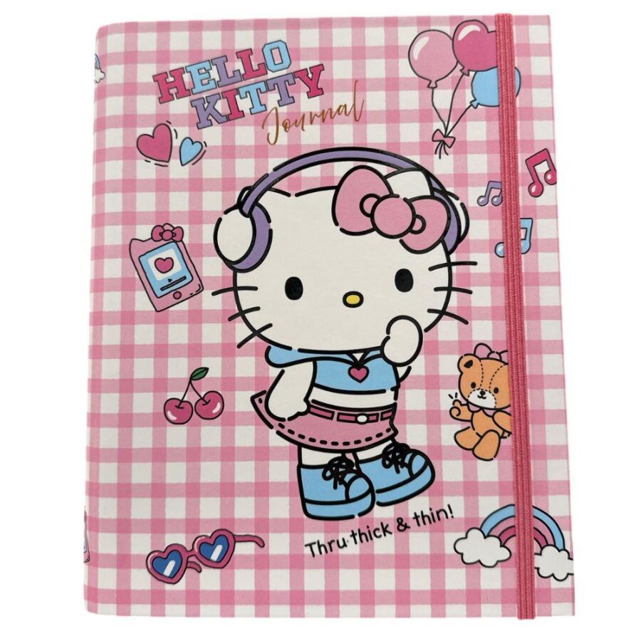 Özel Kapak Tasarımı: Açık pembe zemin üzerine ekoseli Hello Kitty desenleriyle tasarlanmış dış kapak, şirinliği ve zarafeti bir arada sunar.