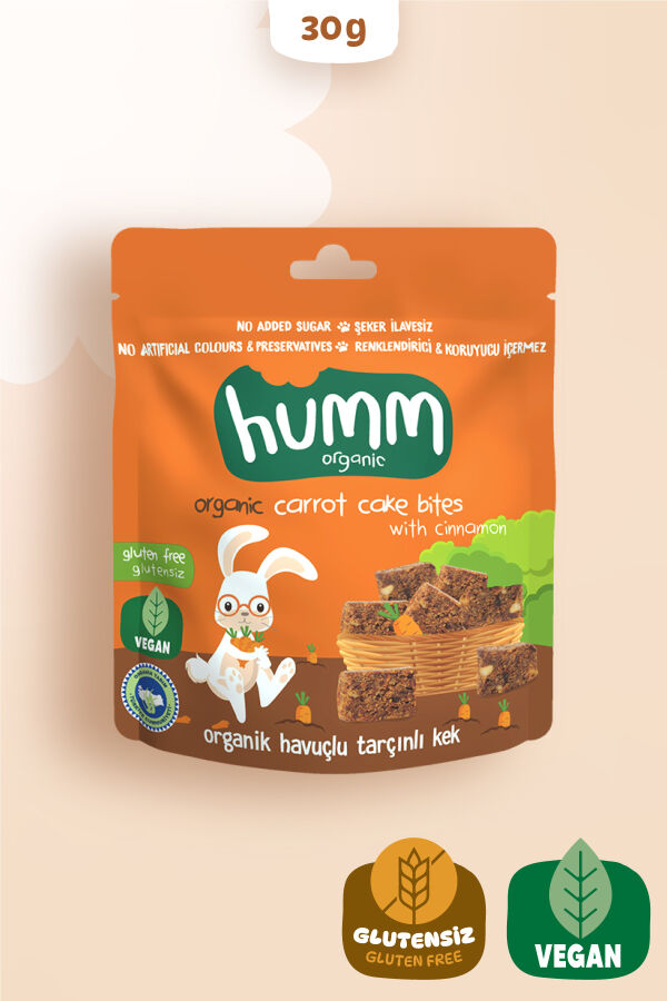 Organik Glutensiz Vegan Havuçlu ve Tarçınlı Kek - 30g Humm Organic’in Organik Glutensiz Vegan Havuçlu ve Tarçınlı Kek’i, lezzeti ve besleyiciliği ile gönüllerde taht kuruyor. Bu kek, organik hurma dolgusu, organik karabuğday unu, organik kavrulmuş fındık, organik kurutulmuş havuç, organik ayçiçek yağı, organik hurma pekmezi, organik toz tarçın ve deniz tuzu gibi doğal malzemelerle hazırlanmıştır. Organik Glutensiz Vegan Havuçlu ve Tarçınlı Kek Hakkında Humm Organic markasının Organik Glutensiz Vegan Havuçlu ve Tarçınlı Kek'i, lezzetli ve sağlıklı bir atıştırmalık seçeneği sunar. Bu vegan kek, organik içeriklerle üretilmiş ve glutensizdir. İçerisinde organik hurma dolgusu, kavrulmuş fındık, kurutulmuş havuç, tarçın ve diğer özel malzemeler bulunur, bu sayede ağızda dağılan bir lezzet sunar. Renklendirici ve ilave şeker içermez; doğal olarak şeker içerir. İçindekiler Organik Hurma Dolgusu ; Organik Karabuğday Unu ; Organik Elma Suyu ; Organik Kavrulmuş Fındık (Alerjen içerik) ; Organik Kurutulmuş Havuç (%7,1) ; Organik Ayçiçek Yağı ; Organik Hurma Pekmezi ; Kabartıcı (Sodyum Bikarbonat) ; Organik Toz Tarçın (%1,1) ; Deniz Tuzu
