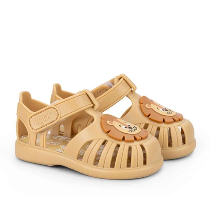 Aslanın cesur adımları bu sandalette! Igor'un Tobby Leon modeli, koyu bej rengiyle doğanın toprak tonlarını ayaklara taşıyan sıcak ve zamansız bir sandalet. Sadeliğin içindeki gücü hissettiren bu model, çocukların yaz günlerinin vazgeçilmez yol arkadaşı olmaya hazır!