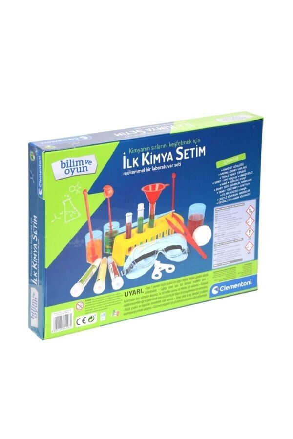 İlk Kimya Setim ile genç kimyagerler iş başına! ; Clementoni kimya deney seti tamamen güvenli bir şekilde 100'den fazla deney yapılmasına imkan tanıyan harika bir bilim setidir. ; Sudan nasıl hidrojen ve oksiyen elde edildiğini ve daha birçok deneyi eğlenerek keşfedin. ; Set içerisinde; emniyet gözlüğü, kapaklı deney kapları, tıpalı deney tüpleri, karıştırıcı, huni, pipet, deney tüpü emniyet anahtarı, deney tüpü rafı, deney tüpü fırçası, spatula, filtre kağıdı, cımbız, kimyasal maddeler ve resimli kullanım kılavuzu yer almaktadır. ; Çocukların; el becerileri, merak ve keşfetme duygularını, zeka becerilerini ve yaratıcılıklarının gelişmesine yardımcı olmaktadır. ; Açık ve kapsamlı resimli kullanım kılavuzunu takip ederek deneyler yapabilirsiniz. ; Kutu ölçüsü:35 x 7 x 26 cm.