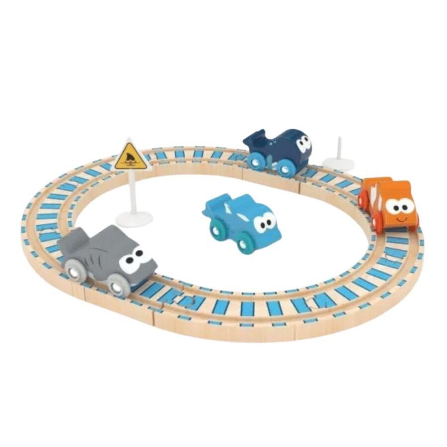 Toksik madde içermeyen, sürdürülebilir ahşap malzemelerden üretilen bu oyuncaklar, güvenli ve çevre dostu bir oyun deneyimi sunar. Set içerisinde 4 araç, 10 ray parçası ve 2 tabela yer alır. Ürün kutu ölçüsü 33 x 7 cm, her araç ise yaklaşık 10 cm boyutundadır.
