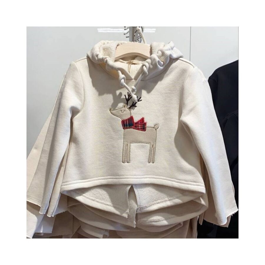 Kapüşonlu Geyik Nakışlı Sweatshirt