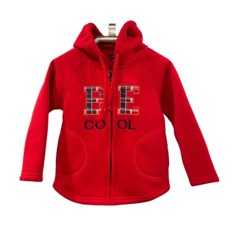 Karamela marka unisex, hem kız hem erkek çocuklar için uygun önü fermuarlı sweatshirt modeli