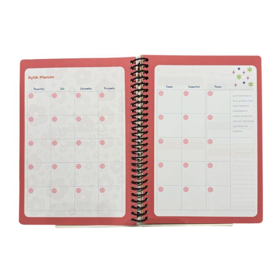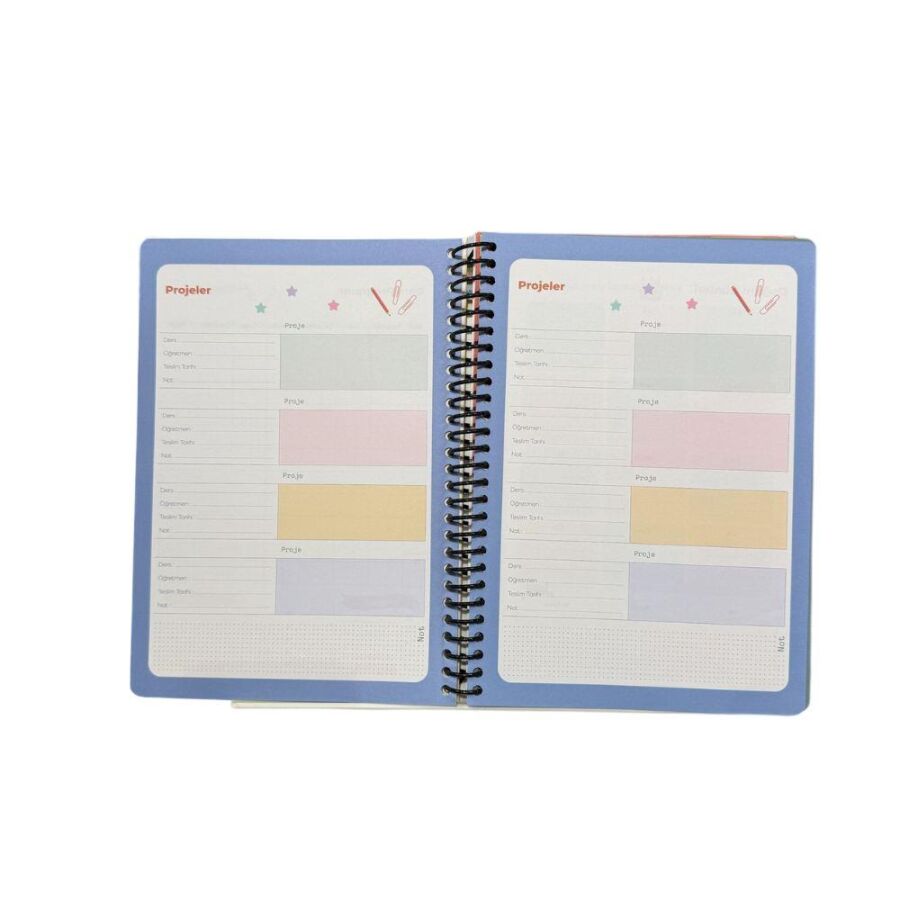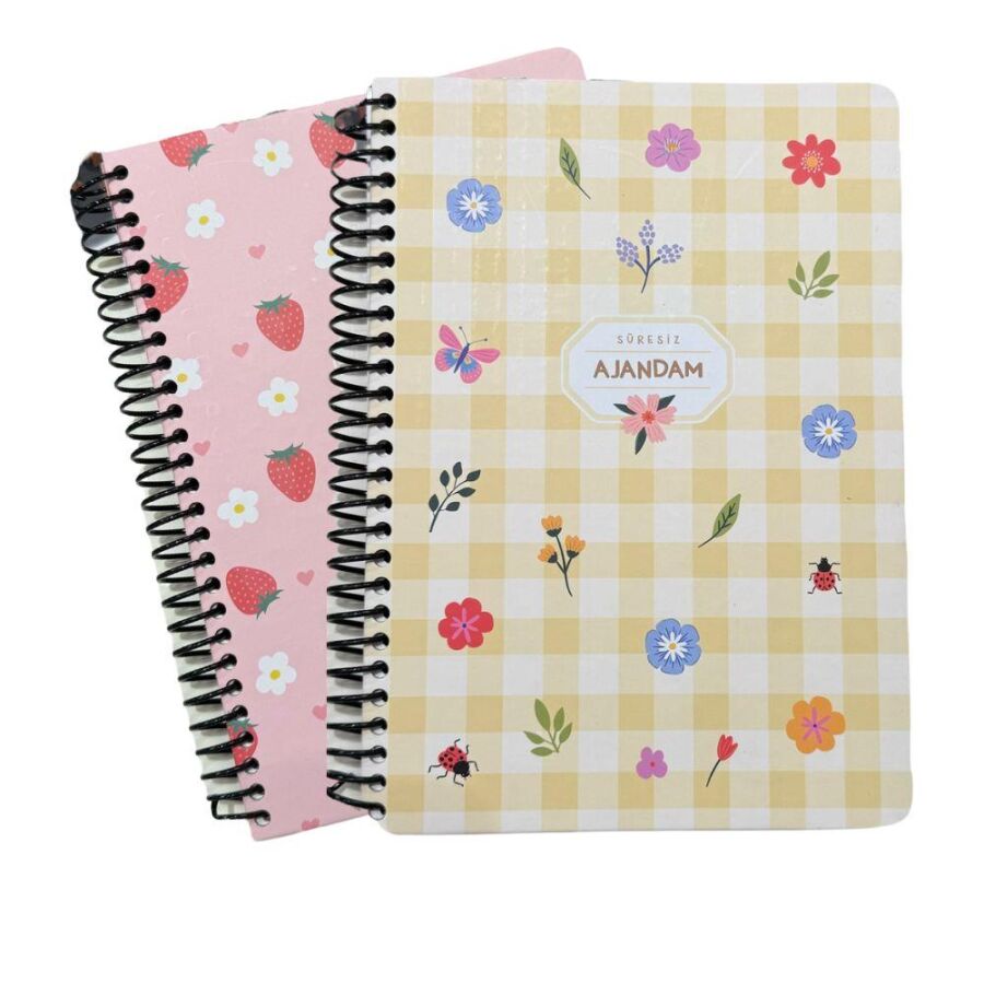 Boyut: 17x24 cm, sert kapaklı ve spiralli tasarım