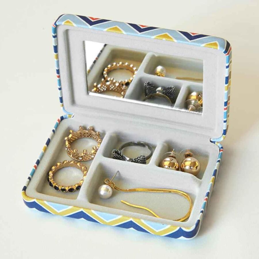 Kadife kaplamalı iç yüzeyi takılarınızı çizilmelere karşı korurken, 4 ayrı bölmesi sayesinde aksesuarlarınızı düzenli şekilde yerleştirmenize yardımcı olur. İç kısmında bulunan ayna ise günlük kullanımda ekstra pratiklik sağlar.