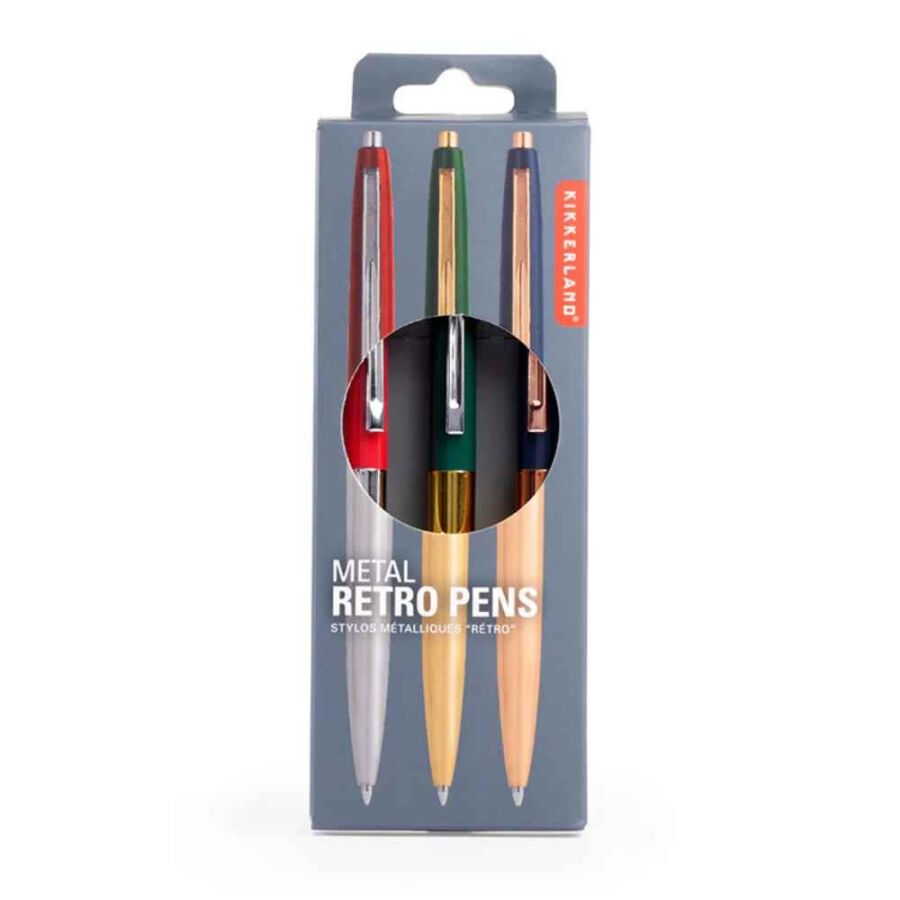 Kikkerland Retro Metal Tükenmez Kalem Seti 3’lü, zarif tasarımı ve fonksiyonelliğiyle Karamela.com.tr’de sizleri bekliyor.