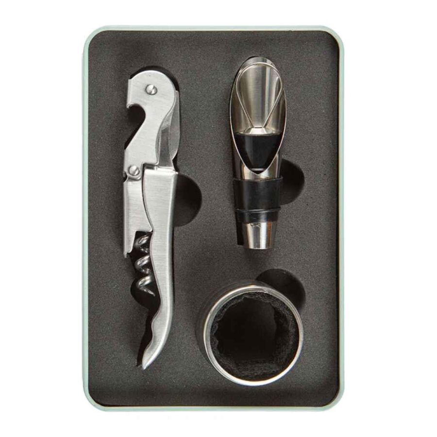 Set içerisinde tirbüşon, şarap dökücü, şişe tıkacı ve damlama önleyici halka bulunmaktadır. Hem günlük kullanım hem de özel davetlerde profesyonel ve düzenli bir servis deneyimi sağlar.