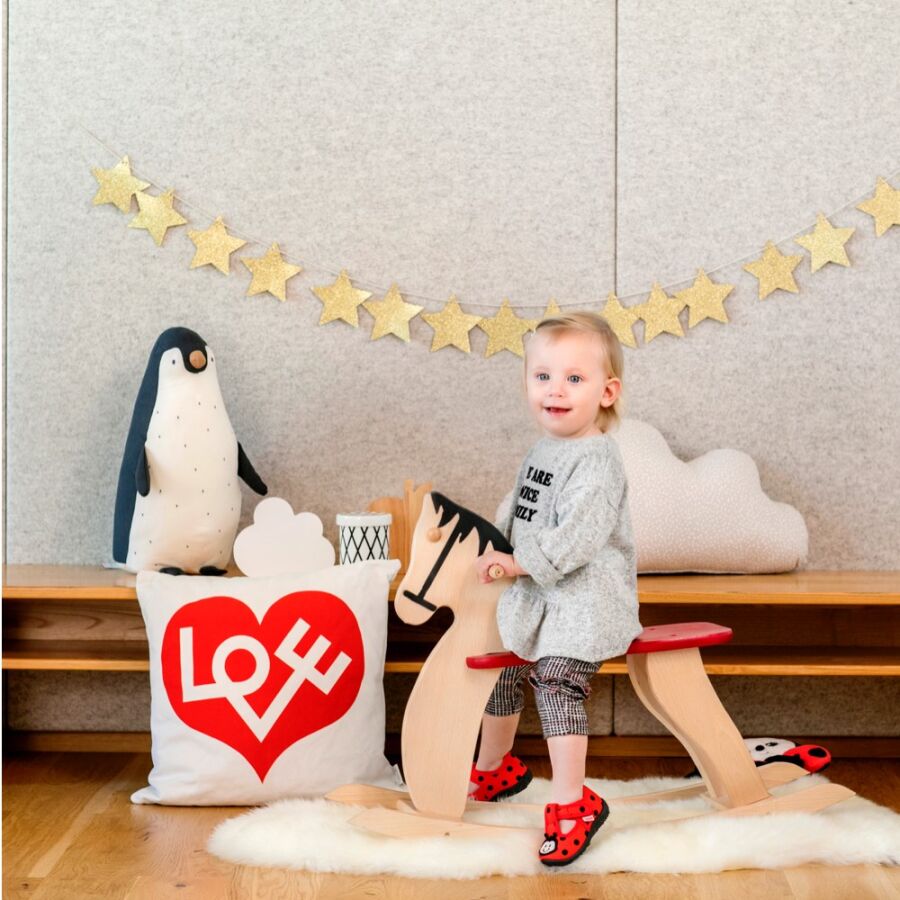 Kız Çocuk için Uğurböcek aplikli kırmızı Ev Ayakkabısı