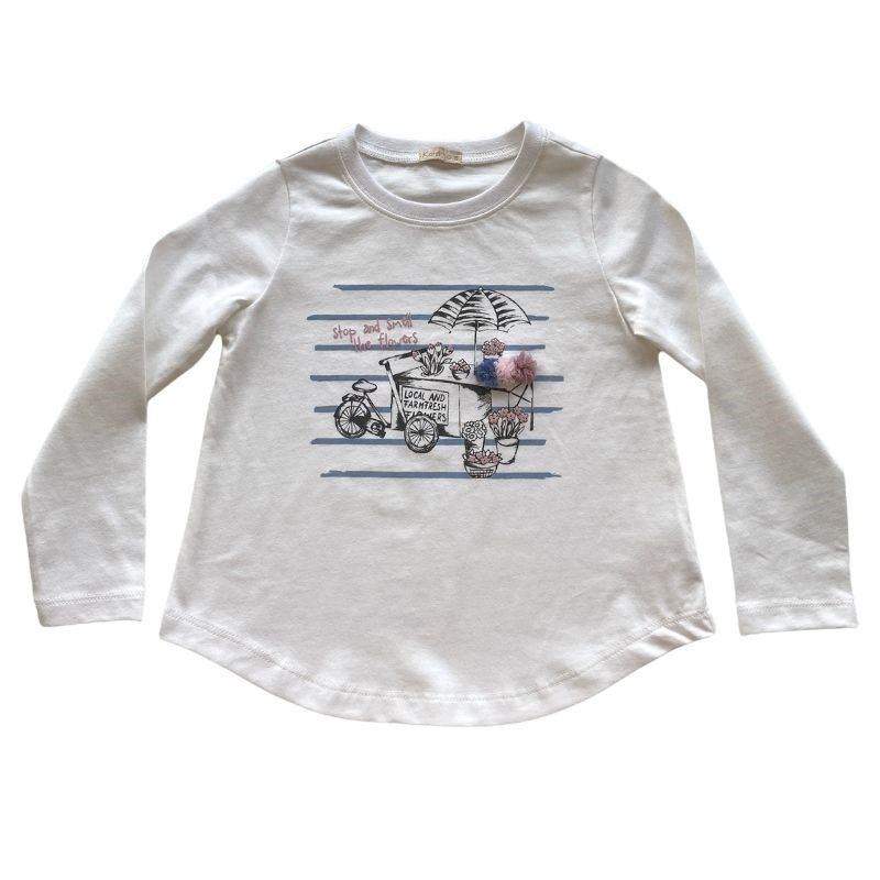 Karamela Kız Çocuk Uzun Kollu T-shirt Çiçek Arabası Desenli KRM.3349 -00000000010005