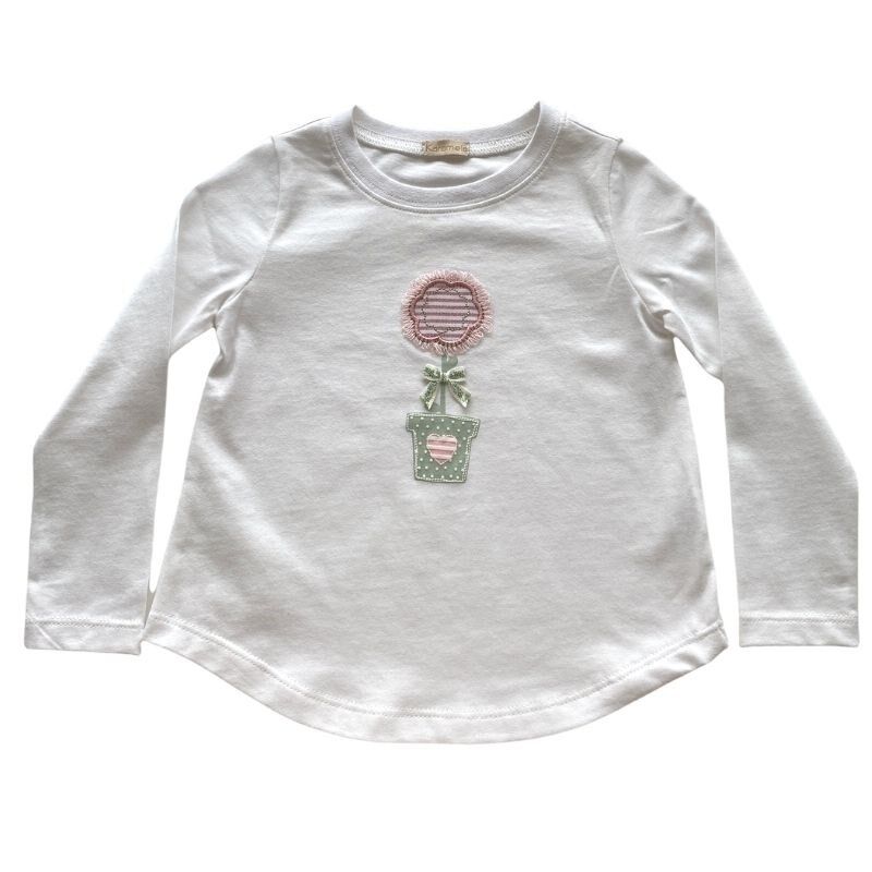 Karamela Kız Çocuk Uzun Kollu T-shirt Saksıda Çiçek Desenli KRM.3348 -00000000010005