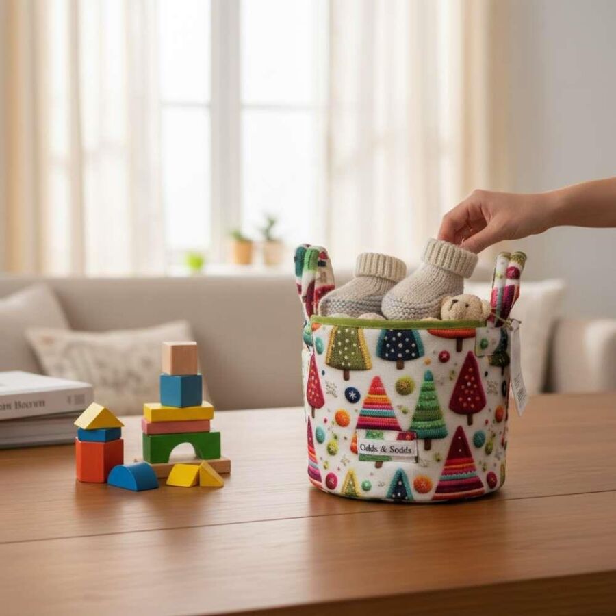 Odds & Sodds’in özgün ve zamansız desenleriyle tasarlanan bu kumaş sepet, hem çocuk odalarında hem salon, oturma odası veya yatak odasında dekoratif bir tamamlayıcı olarak tercih edilebilir. Günlük kullanım için olduğu kadar hediye alternatifi olarak da öne çıkar.