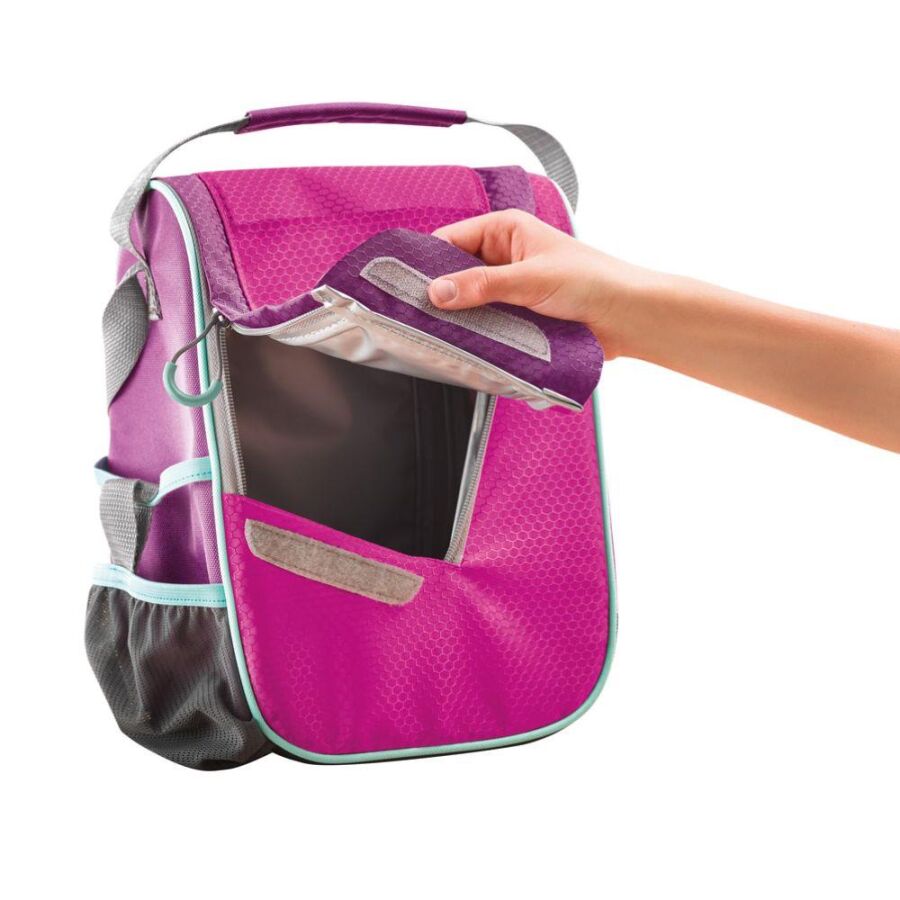 Ekstra Özellikler: Su şişesi cebi, taşıma sapı ve omuz askısı, isim kartı bölmesi, dayanıklı ve kolay temizlenebilir taban kumaşı.