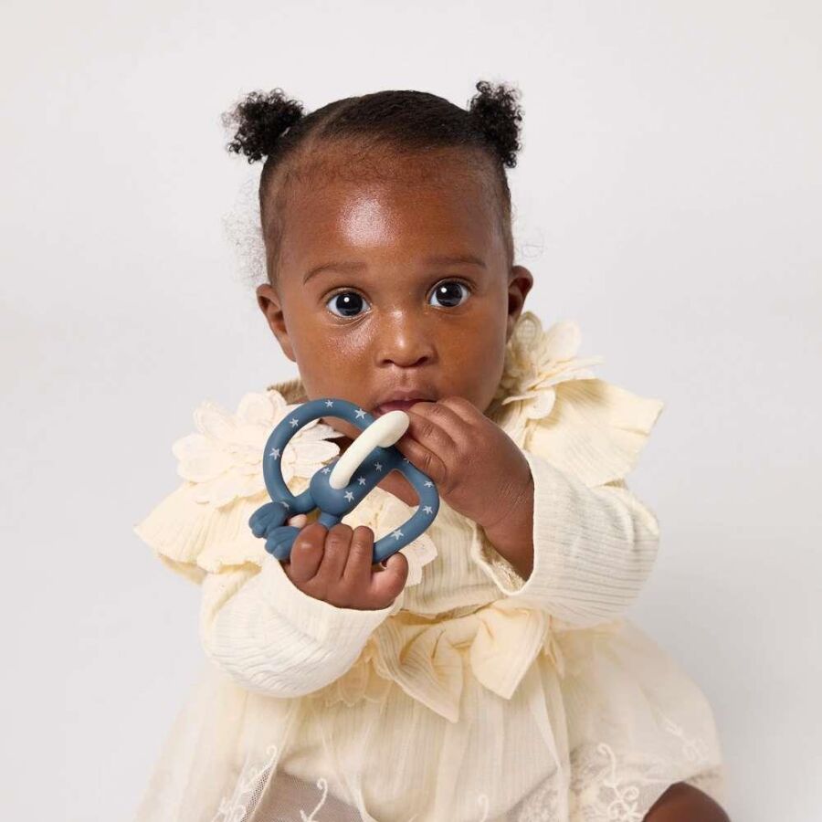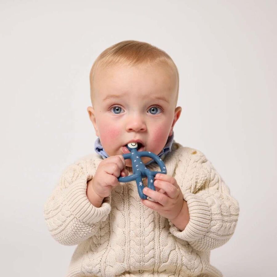Matchstick Monkey Monkey Star silikon diş kaşıyıcı, minik eller için tasarlanmış hafif ve esnek yapısıyla diş çıkarma döneminde bebeklere büyük rahatlık sağlar. Yıldız desenli özel seri tasarımıyla dikkat çeken bu model, bebeğinizin ağrıyan noktaya kolayca ulaşmasına yardımcı olur. Üzerindeki kabartmalı yüzey sayesinde diş etleri nazikçe uyarılır ve teething jelleri hijyenik biçimde doğru noktaya taşınır — üstelik parmak kullanmanıza gerek kalmaz.
