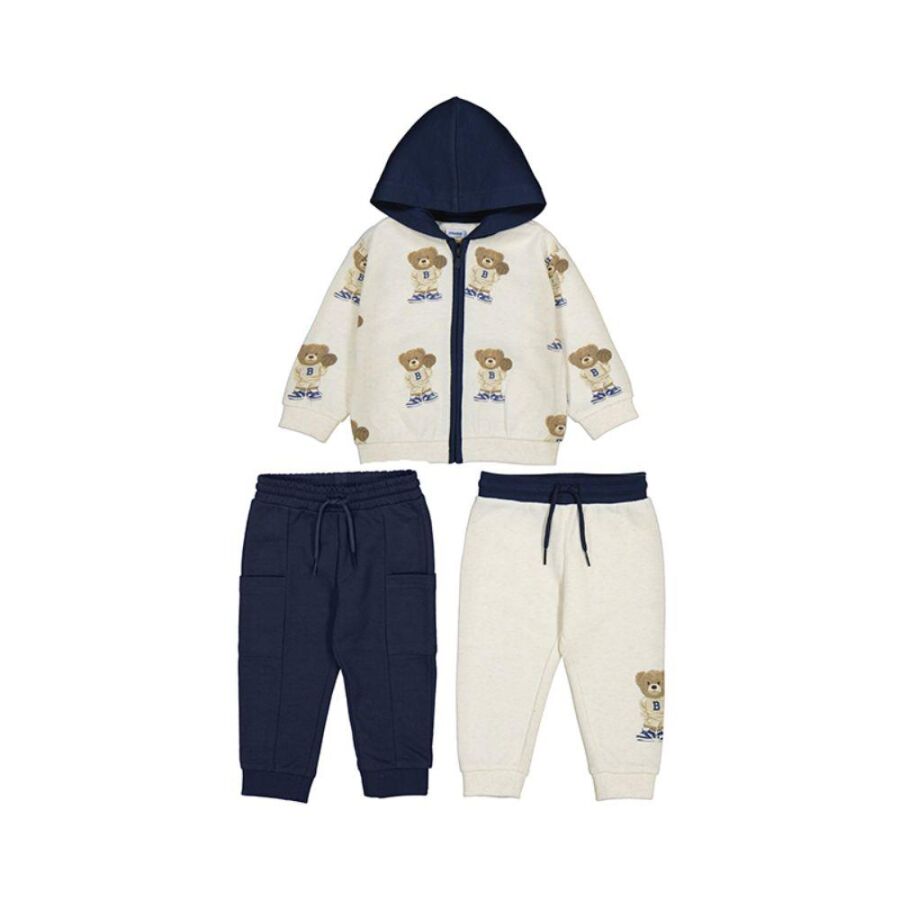 Mayoral Erkek Bebek 3'lü Eşofman Takım AW2502836, bebeğiniz için rahat ve şık bir kombin sunar. Set; sweatshirt ve iki adet uzun pantolondan oluşur ve günlük kullanımda konfor sağlar.