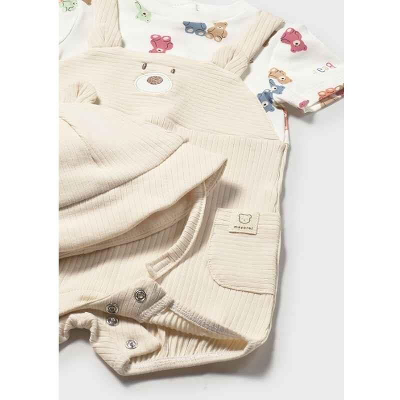Mayoral Erkek Bebek Şapka Kısa Tulum Set SS2601608, yaz aylarında minik beyler için konforlu ve şık bir kombin sunan kullanışlı bir 3’lü settir. İspanyol çocuk moda markası Mayoral’in kaliteli ve modern tasarım anlayışıyla hazırlanan bu özel takım, günlük kullanım için ideal bir tercihtir.
