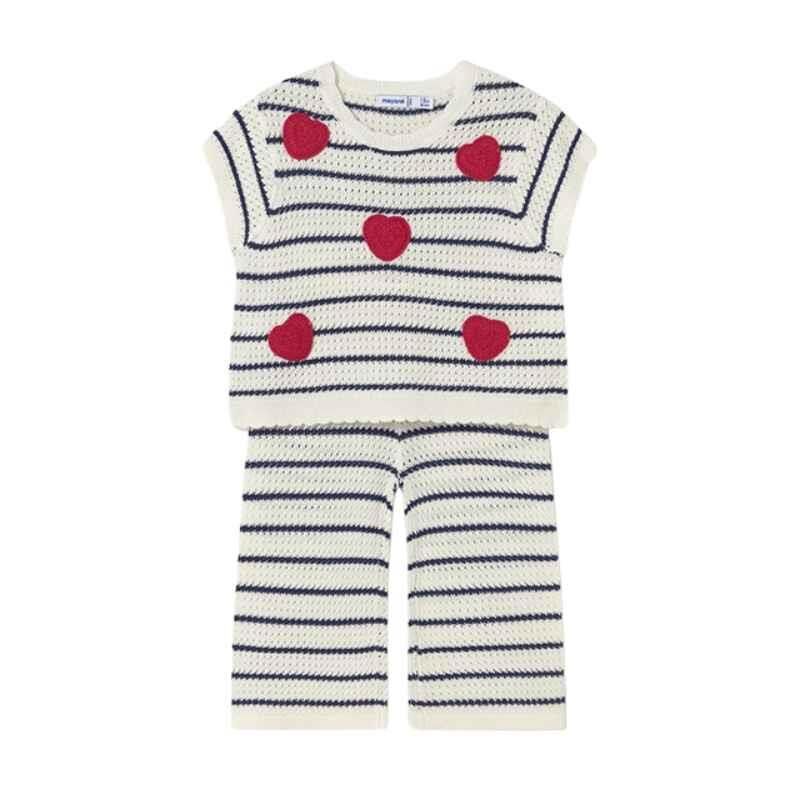 Mayoral Kız Bebek 2’li Triko Pantolon Takım SS2601516, zarif tasarımı ve yumuşak dokusuyla minik prensesler için hem şık hem de konforlu bir kombin sunar. İspanyol çocuk moda markası Mayoral’in kaliteli ve modern tasarım anlayışıyla hazırlanan bu takım, günlük kullanım ve özel anlar için ideal bir tercihtir.